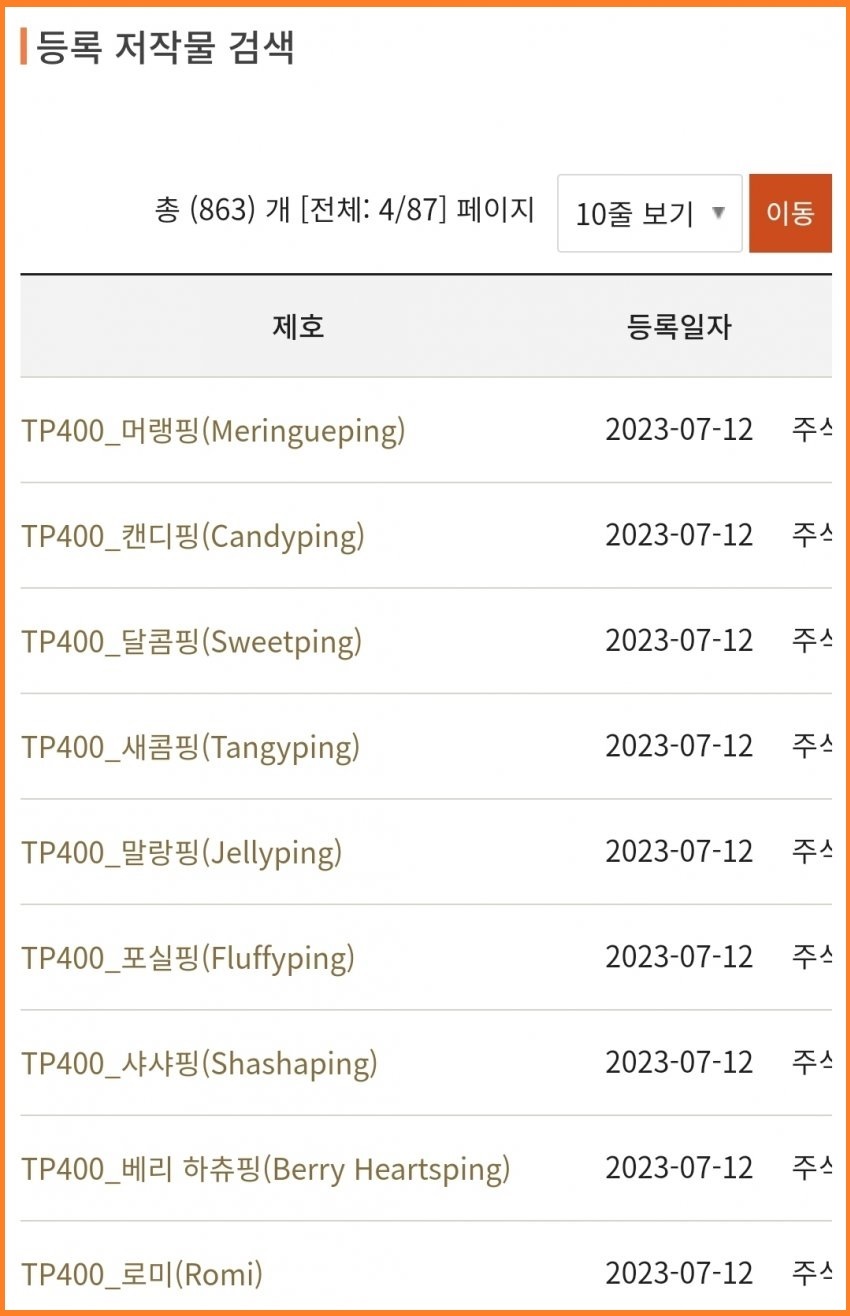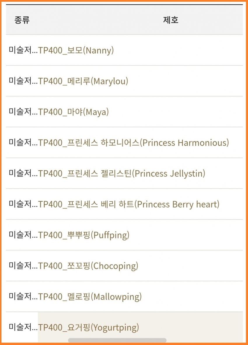 머랭핑, 캔디핑, 달콤핑, 새콤핑, 말랑핑, 포실핑,