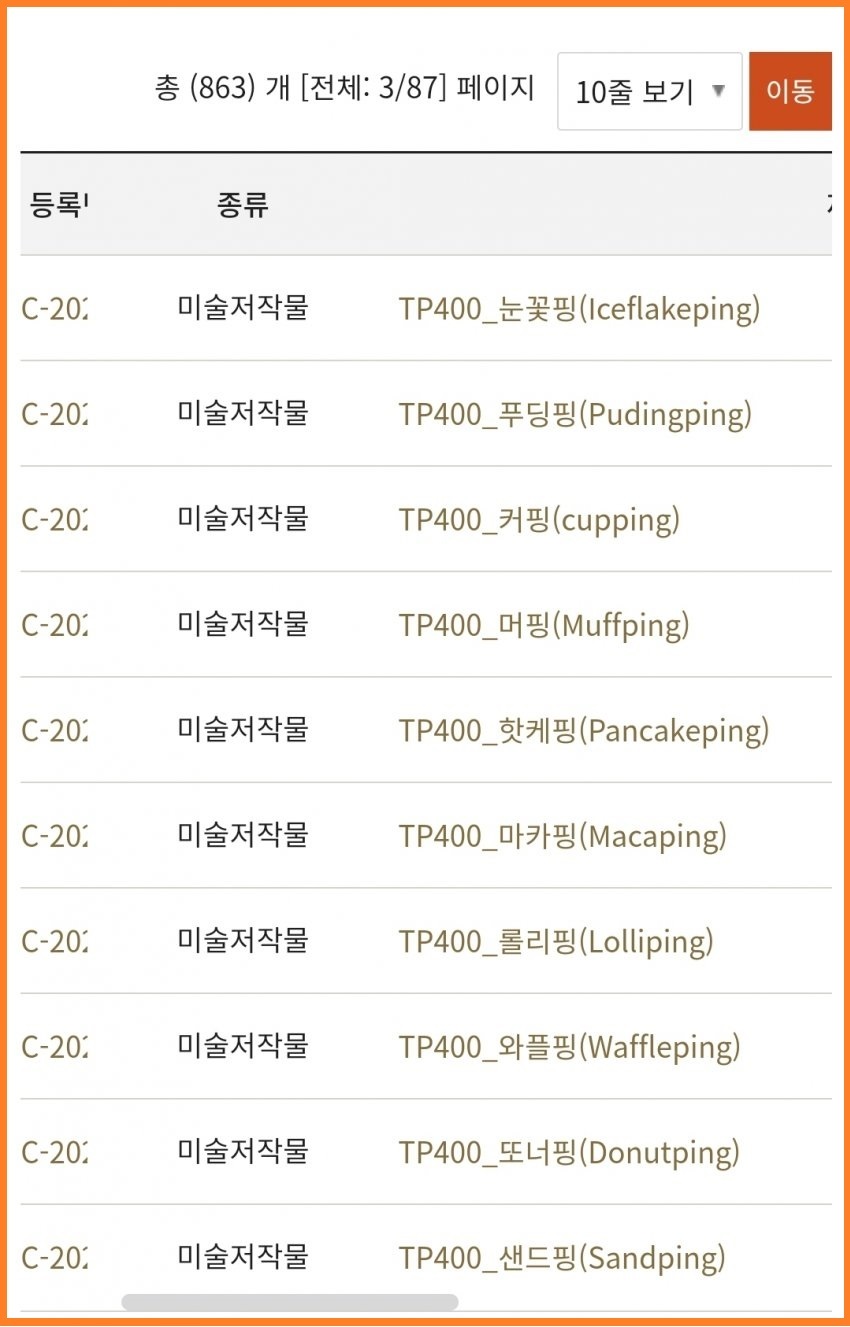 핫케핑, 마카핑, 롤리핑, 와플핑, 또너핑, 샌드핑,